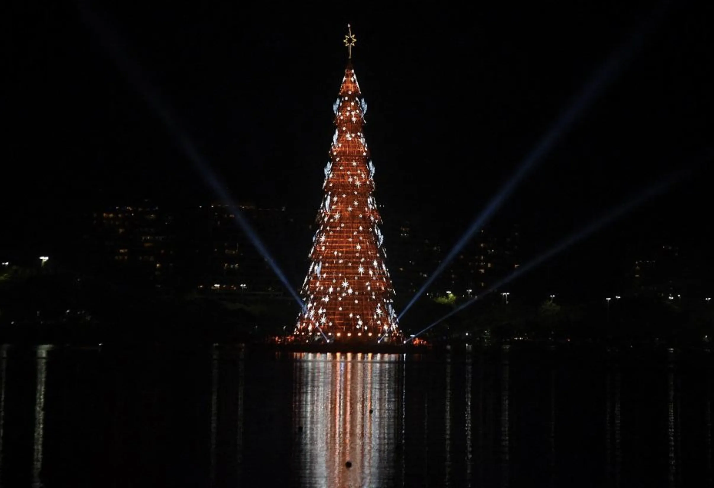 14. Коледна елха е осветена по време на гала на езерото Родриго де Фрейтас в Рио де Жанейро, Бразилия