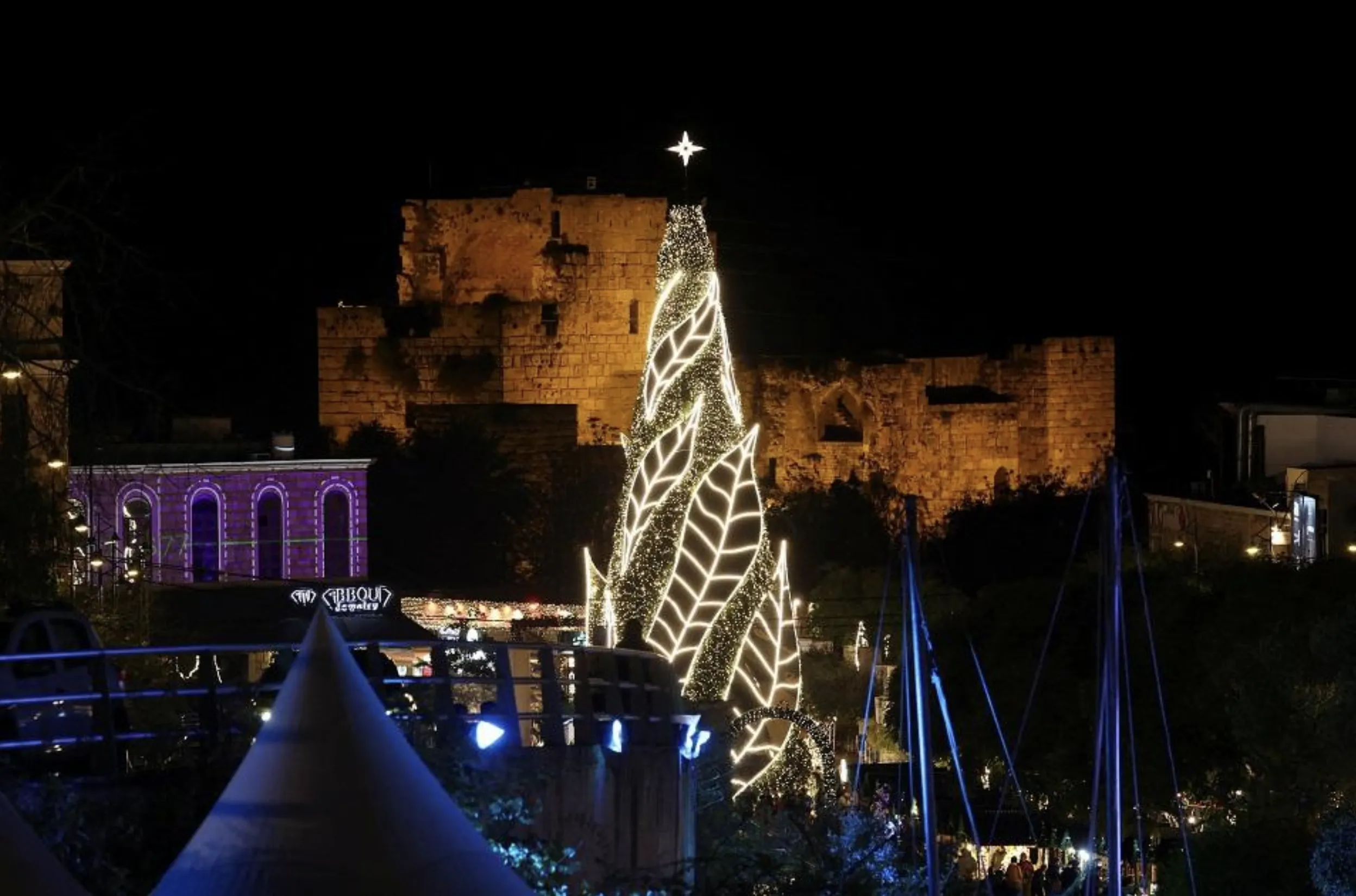 20. Осветена коледна елха е сложена покрай цитаделата в Библос, Ливан по време на празничния сезон