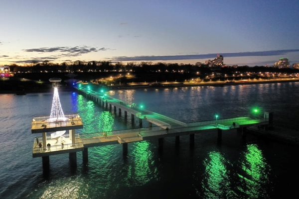 Коледна елха блестна на близо 300 метра във вътрешността в морето - на Моста в Бургас. Новината заяви на страницата си във фейсбук кметът Димитър Николов.