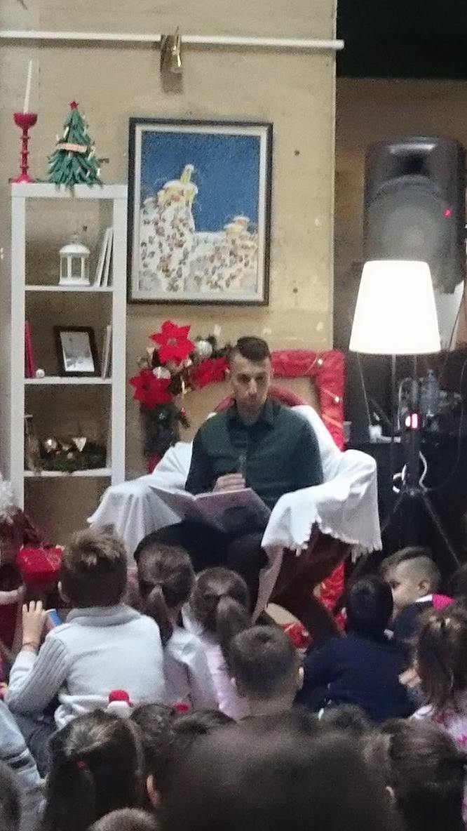 Десетки деца слушаха с огромен интерес своя обичан футболист. Той освен съумя да завоюва вниманието на публиката с красива коледна приказка, само че на финала раздаде и награди за послушните фенове.