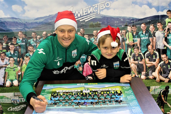 Компания им прави и наставникът на бистричани Костадин Ангелов. Малчуганите освен си направиха куп фотоси за спомен с тях, само че и получиха като подарък персонално подписани от футболистите календари за 2018-а година.
