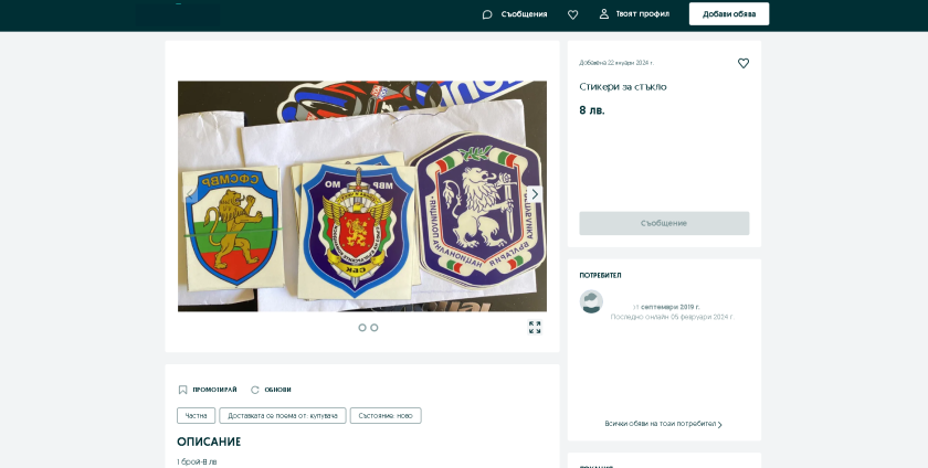Оказва се, че това не е чак толкоз лесна задача. При нашата инспекция не открихме разгласи за съответния артикул, само че вместо това изникнаха други оферти - стикери на Министерството на вътрешните работи.