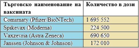Единствената ваксина, с която би разполагала страната ни през януари идната година (не отчитаме опцията за нови доставки в последните месеци на 2021) е еднодозовата Janssen, 172 010 дози от която са със период на валидност до края на февруари 2023-a.