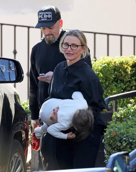 На фотосите се вижда звездата от " Ангелите на Чарли ", която държи за ръката тригодишното дете, до момента в който то палаво подскача на паркинга на ресторанта. И дребната е толкоз игрива, че даже губи алените си обувки по път към фамилния автомобил. Ето за какво Камерън е принудена да я носи на ръце, до момента в който Бенджи държи обувките, написа Page Six.