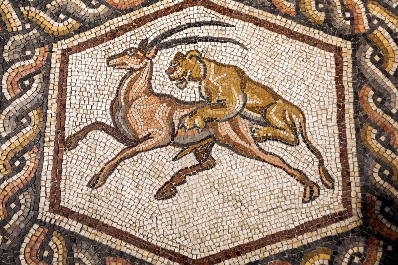 Мозайката най-вероятно е била под на предверие в имение в богатия квартал " Лод ", покрай настоящия Тел Авив. Снимка: [ Reuters ]