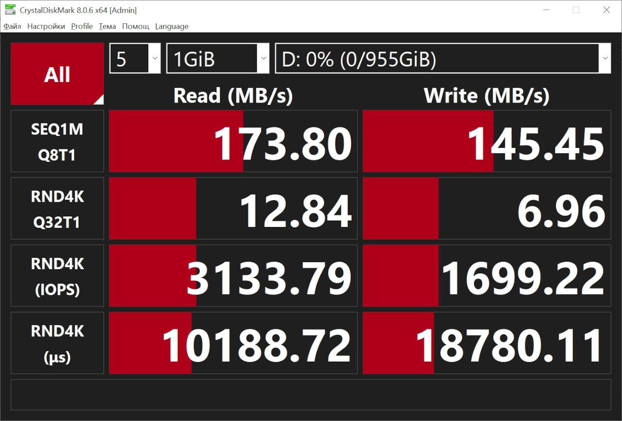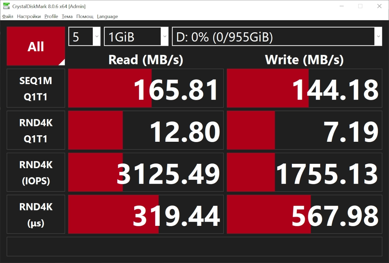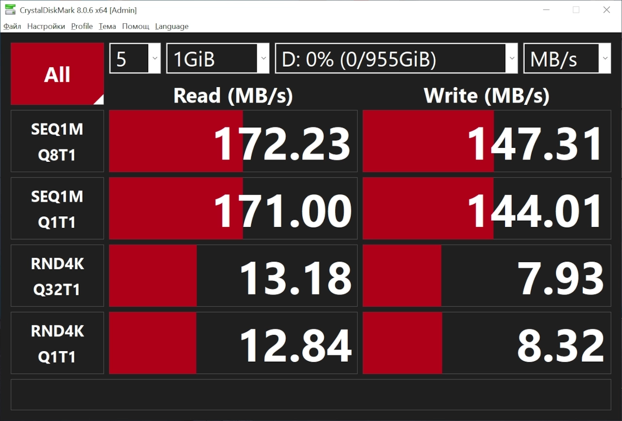 CrystalDiskMark “default ” тестванията потвърдиха: над 147 MB/s скорост на писане – повече от заявеното от производителя