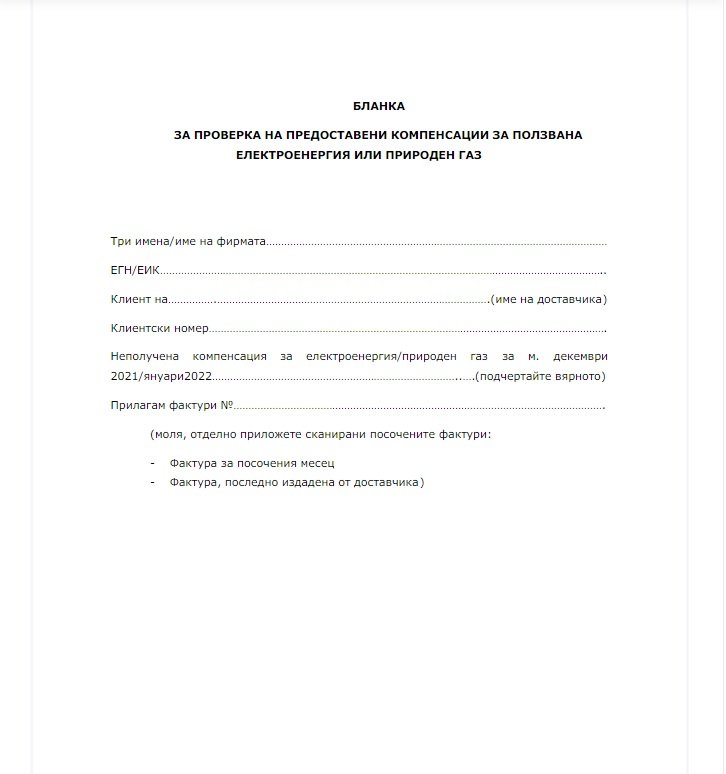 Ако даден консуматор не е получил дължимата му отплата, той може да алармира за това Министерството на енергетиката (МЕ) посредством попълване на приложената бланка.