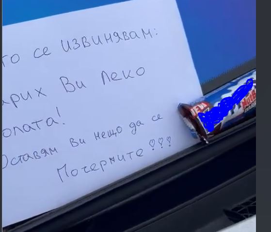 Понякога обаче въпросните бележки напълно не са приятни. Подобна е и идната обстановка, която се популяризира в обществените мрежи. Мъж споделя видео от момента, в който открива записка на предното стъкло на автомобила си.