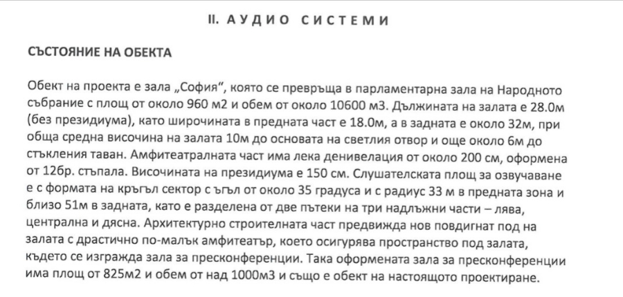 Аудио и видео системата, която би трябвало да се купи, достави и инсталира, би трябвало да обезпечи дейно протичане на съвещанията на Народното събрание в пленарната и конферентната зала.