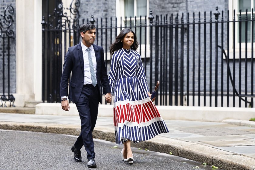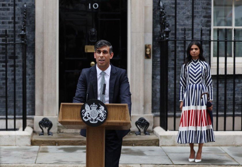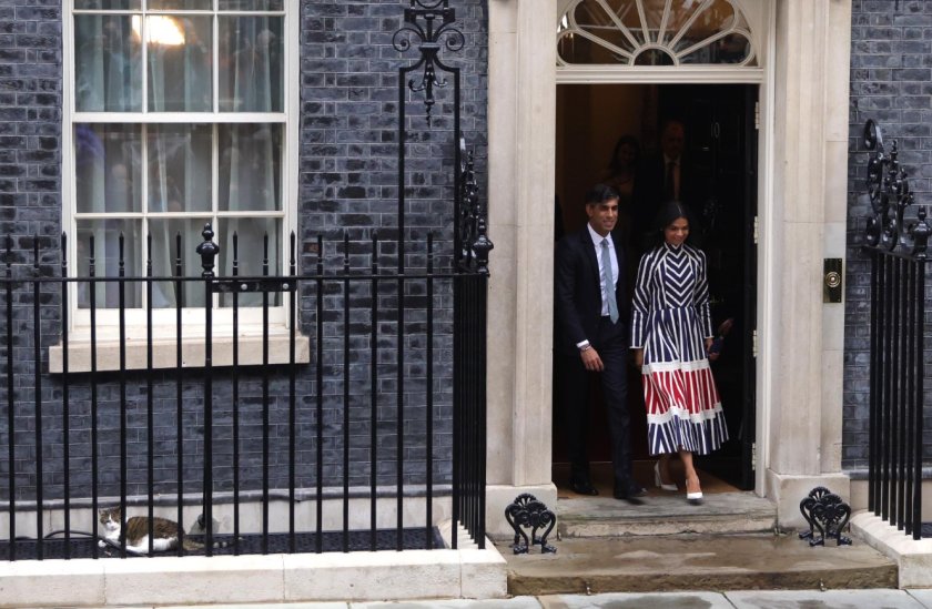 Консерваторът Риши Сунак дойде в Бъкингамския замък, където публично ще връчи оставката си на крал Чарлз Трети.