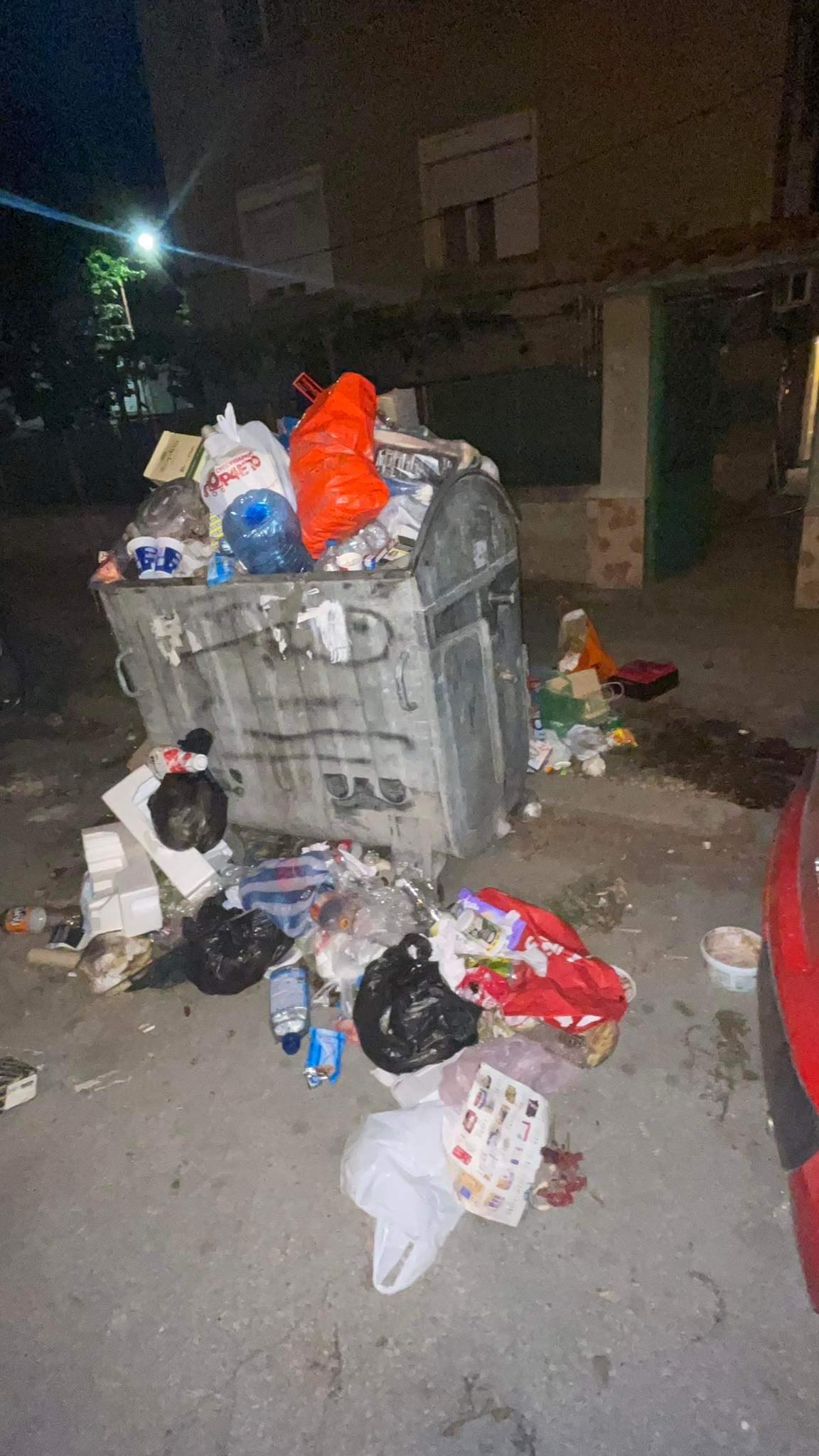 Локацията е ул. „ Достоевски ” № 20, а боклуците стартират да се складират към този момент и отвън контейнера. Мястото е замязяло на мини сметище дружно с тротоара.