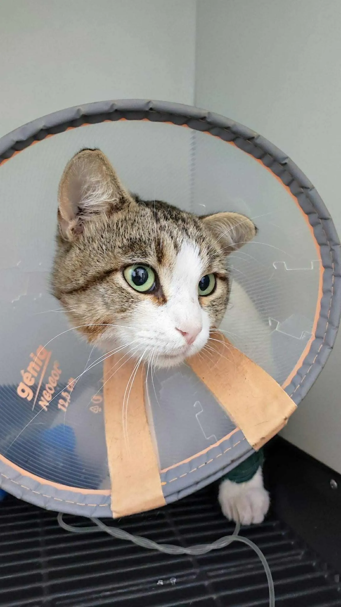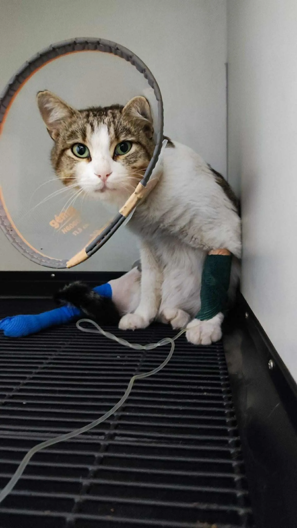 Котаракът ще остане в клиниката до понеделник в това число, след което възстановителният му интервал ще премине в домашни условия – при човек, поел уговорката да го приюти и да се грижи за него, до момента в който оздравее изцяло.