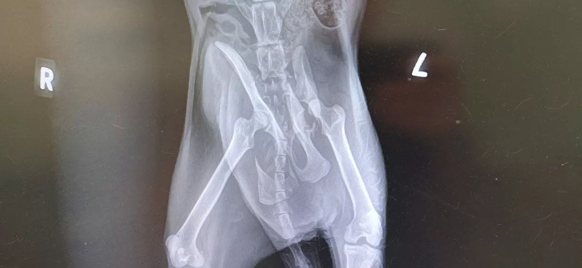 Доброволци, притекли се на помощ, са транспортирали животинчето до ветеринарна клиника, където рентгеновите фотоси демонстрират съществени увреждания – тежко строшаване на таза на няколко места. Единственият късмет за възобновяване е комплицирана интервенция, която би трябвало да се извърши на два стадия.