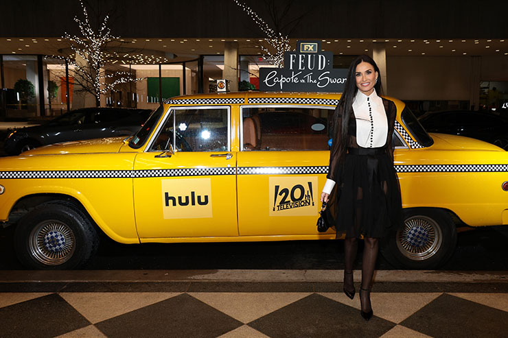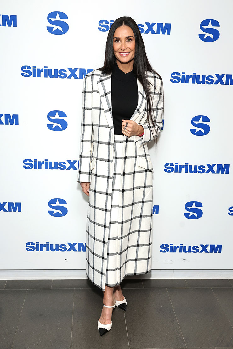 Кой, в случай че не Деми Мур, може да отиграе със жанр и искра три събития в един ден, изискващи три преобличания.Поводът и за трите изяви на 61-годишната актриса бе премиерата на новия сериал „ Feud: Capote vs. The Swans “.Деми Мур се бе постарала и трите й обществени изяви да са в една цветова тоналност, що се отнася до дрешника й – черно и бяло!Първо имаше среща с публицисти и почитатели, за която Деми Мур бе облечена в дълга пола и палто – каре в черно и бяло, комбинирани с черно поло.
