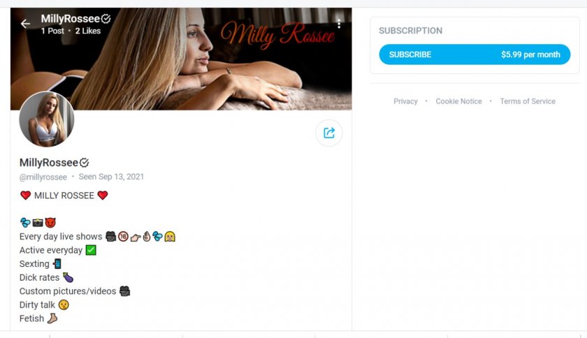 В профила си там Милица дава обещание всеки ден шоу онлайн, писане на мръсни известия, фотоси и видеа, свързани с култове. Нещо повече - Мили предлага да прави оценка мъжки достолепия в OnlyFans. И то единствено против 6 $ на месец!