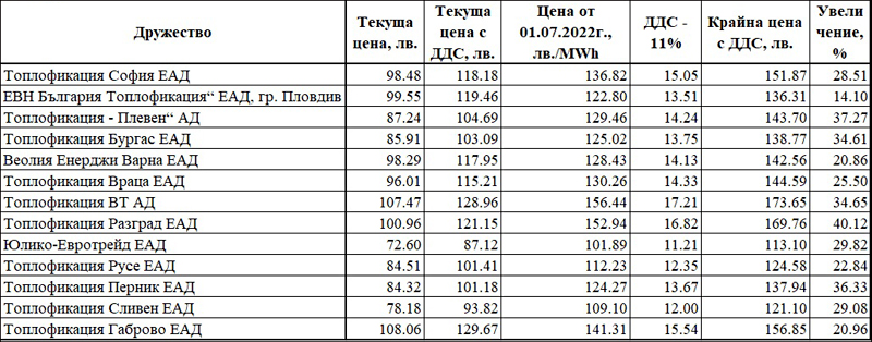 „ Прогнозираните продажби на топлинна сила за новия ценови интервал са 3 684 157 МВтч надлежно 6.67% по-големи от тези през 2021г., което се дължи на следните предпоставки: