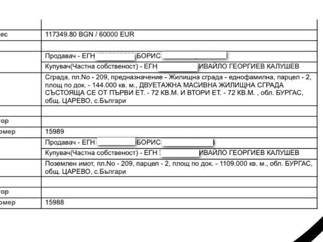 Ето какво попада публично в имотния указател като благосъстоятелност на Ивайло Калушев на територията на община Царево. Остава мистерия чии са останалите декари.