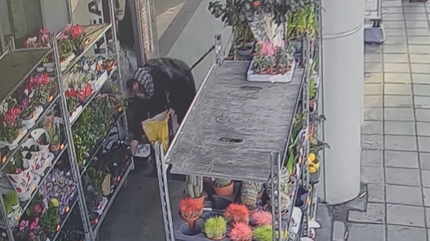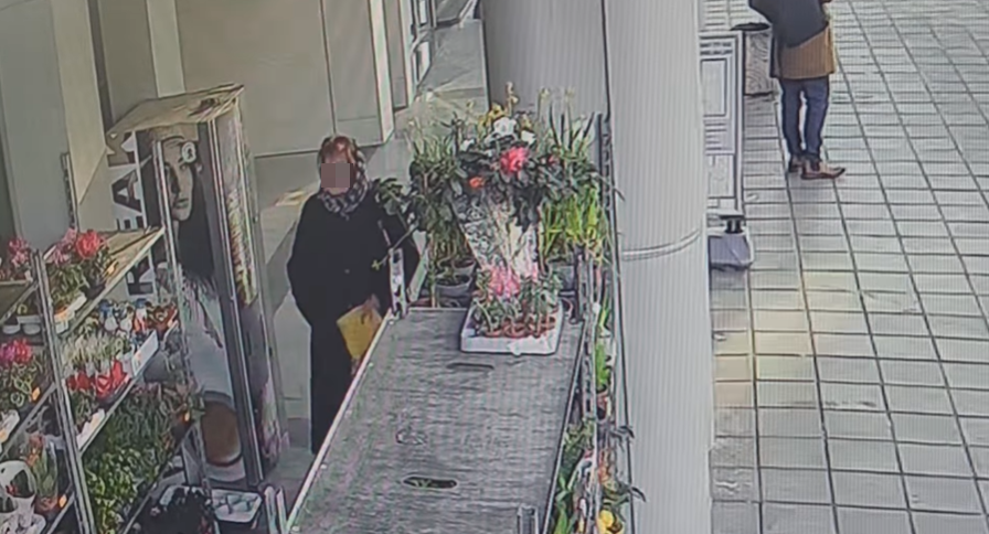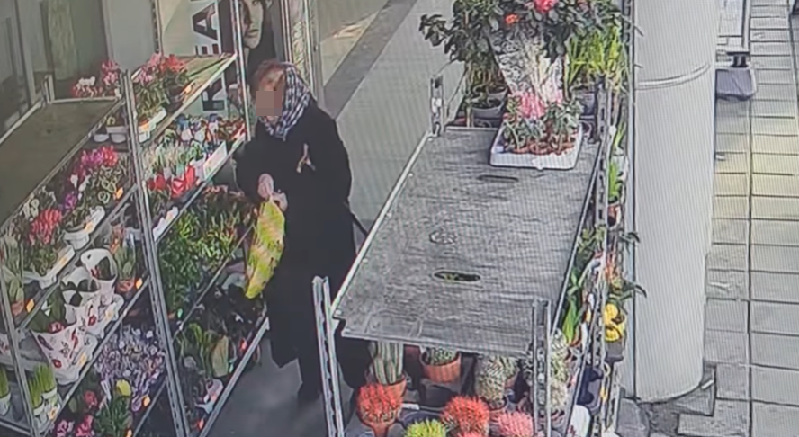Видео, оповестено анонимно, демонстрира стара жена, която взима три саксии с цветя и ги слага в чантата си. Авторът на обявата иронично разяснява: " Мина, избра, единствено не помни да заплати ".