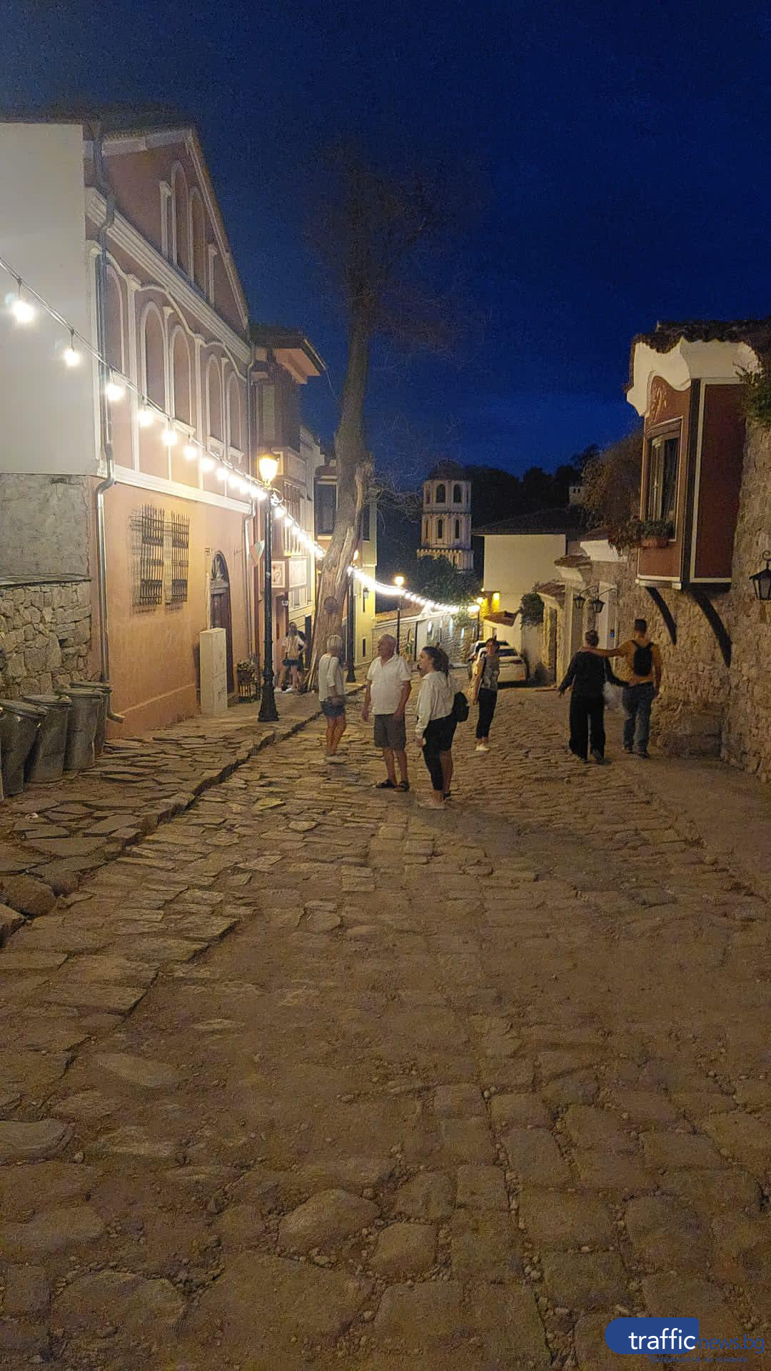 Гирляндите от лампички осветяват целият път от бариерата на църквата " Света Богородица " чак до върха на тепето.