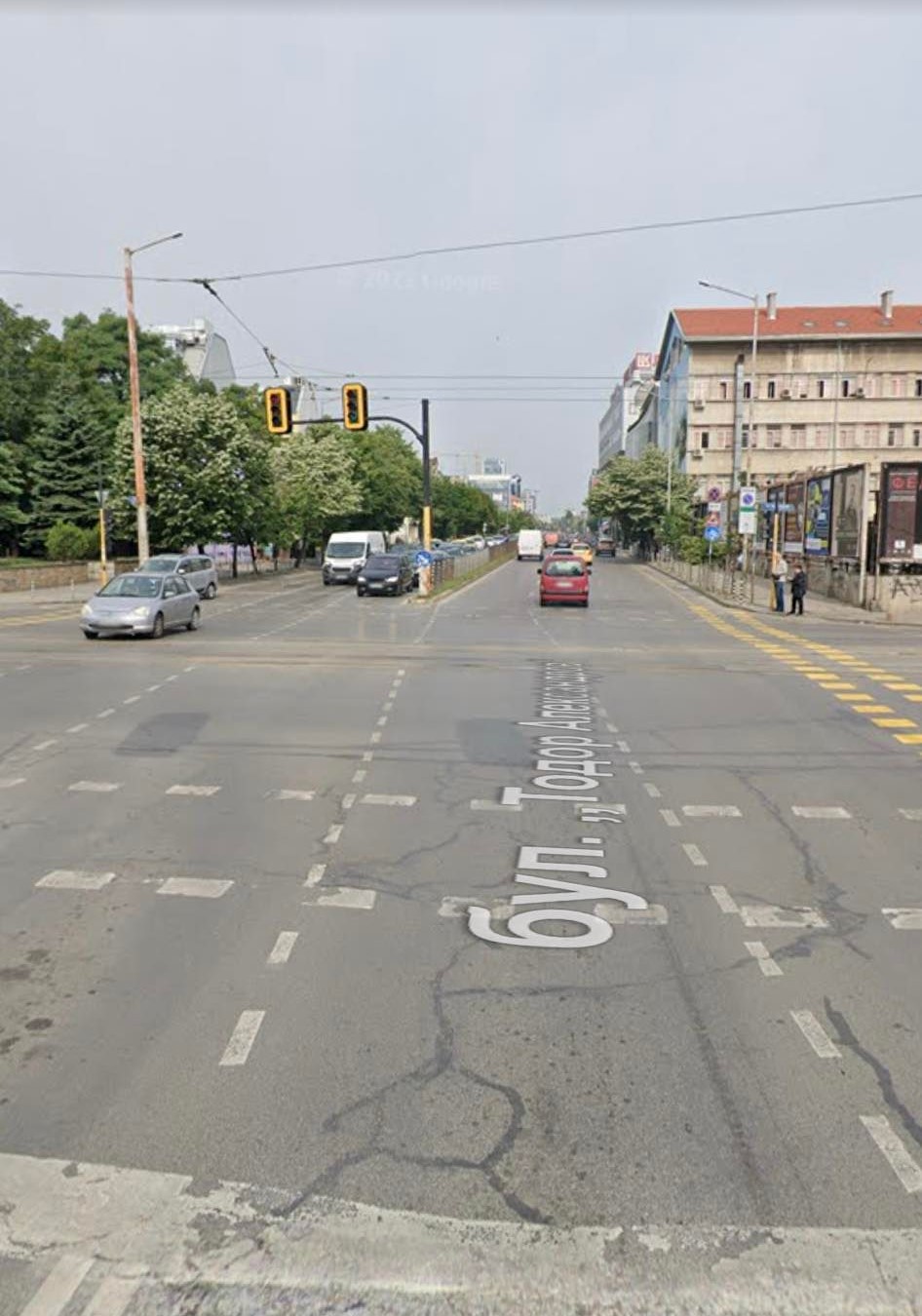 Ако решим да продължим напряко оставаме на светофара, където има 3 ленти – 2 от тях за напряко и 1 за ляв завой. Логично откакто продължим придвижването си напряко след кръстовището, в случай че сме в най-дясна лента преди светофара влизаме в дясната лента след светофара и в случай че сме в междинната – отиваме в лявата след светофара, защото продължаваме придвижването си по двулентов бул..