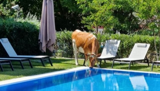 Крави " атакуват " басейните в Слънчев бряг, където вървят на водопой, написа TravelNews. Стадо пасе около празните ливади в комплекса и се отделя да пие вода от басейните на хотелите. Днес такава беше видяна в Amara Sugar Hotel, наоколо до " Какао бийч ".