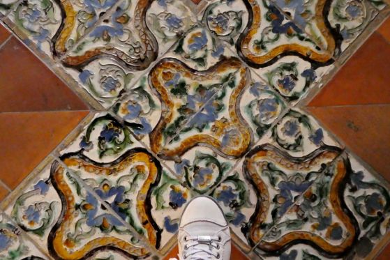 Краят на септември е, само че следобедната горещина по табиет е допълзяла до еврейския квартал на Севиля. В тишината на сиестата дамата пред мен явно бърза. Сянката й се придвижва по паважа, безшумна и гъвкава като струйка пушек. След няколко крачки потъва в хладината на първия вход. Влизам и аз след нея без да знам за какво. Озовавам се в дребен магазин. Погледът ми минава небрежно през рафтовете с дребни сувенири и внезапно набива спирачки пред дребна порцеланова картина, вградена напряко в мазилката на стената. Плочката е с размер на iPhone X, само че напуканото й лице издава, че е връстница на Сервантес. На нея две сеньори са се разположили комфортно на скамейка и към този момент няколко епохи оживено разискват нещо (вероятно трета сеньора). Малко настрана от тях, на друга плочка, рицар в цялостно бойно снаряжение язди напето към някакво село. На трета виждам прислужникът му върху охранено магаре. Съвсем до вратата на магазина малко момче чете вечерната си молитва, коленичило до леглото... Цялата стена е изпъстрена с сходни поолющени плочки, които са като че ли вагончета на детско влакче, което ме отнася обратно във времето....