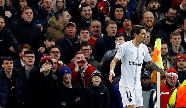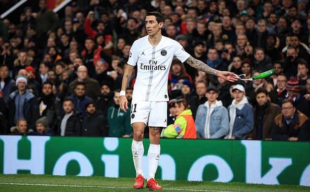 Крилото на Пари Сен Жермен Анхел ди Мария бе измежду главните настоящи лица по време на вчерашния триумф с 2:0 на неговия отбор над Манчестър Юнайтед в първи 1/8-финален конфликт от Шампионската лига. Аржентинецът, който записа много несполучлив интервал с екипа на " алените дяволи " през сезон 2014/15, бе посрещнат на нож още с появяването си на терена в " Театъра на фантазиите ". Ди Мария обаче трябваше да се оправя освен с мощните освирквания. На няколко пъти към него бяха хвърлени бутилки - с бира и минерална вода. Той обаче показва безчувственост, като при едната от тези обстановки подвигна бирената бутилка към устата си. В края на първото полувреме аржентинецът трябваше да превъзмогне и физическата болежка, откакто Ашли Йънг, който към този момент имаше жълт картон, го ускори в металните огради на " Олд Трафорд ". Ди Мария получи помощ от медицинския щаб на ПСЖ и продължи мача, а през второто полувреме имаше съществена заслуга за триумфа на гостите, откакто асистира за головете на Преснел Кимпембе в 53-ата и Килиан Мбапе в 60-ата минута. При насладата си след първото попадение 30-годишният състезател отговори на почитателите с цветущи хули.