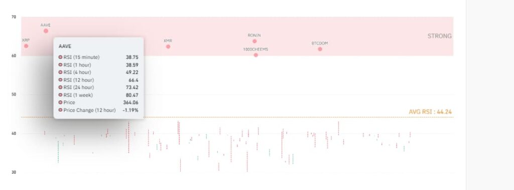 Aave ( AAVE ), която все още на писане на публикацията се търгува на цена от $361 след спад от близо 6%, дава опция за покупка. Дванадесетчасовият RSI на равнище 66.4 демонстрира бичи капацитет, до момента в който четиричасовият RSI на равнище 49.22 допуска опция за възходящо придвижване.