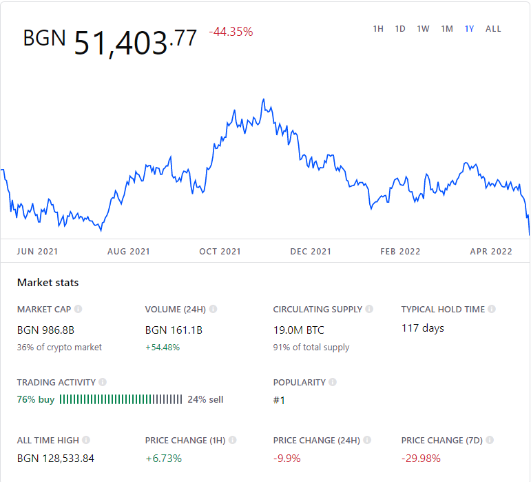 Стойността на биткойна доближи нови минимални граници с следващата порция разпродажби на криптопазара в сряда и четвъртък на фона на проблемите към стейбълкойна TerraUSD.