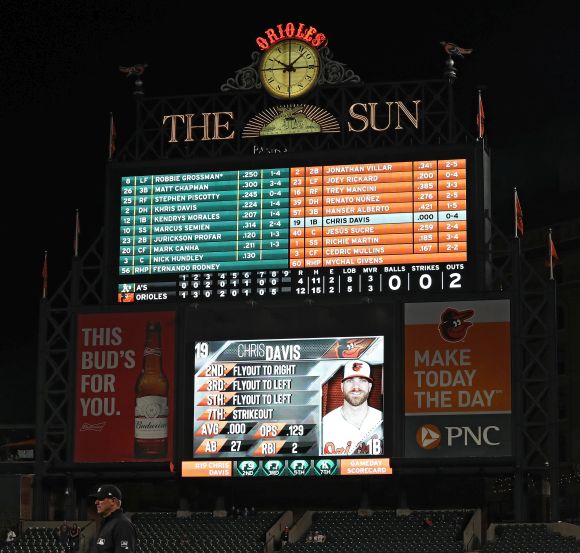 Тази нощ, при домакинската победа на " скорците " с 12:4 против Оукланд Атлетикс, Дейвис стигна дъното и стартира да копае надолу. Батиращият под № 6 бивш слъгър приключи 0 от 5 с 2 страйкаута и откри нов безспорен антирекорд за първокласен бейзболист – 0 от 49!