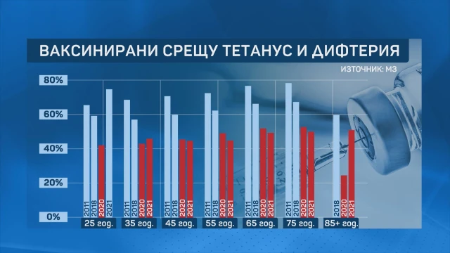 Критичен спад във имунизационното покритие против тетанус и дифтерия измежду възрастните. Това излиза наяве от данни, които здравното министерство даде на бТВ.