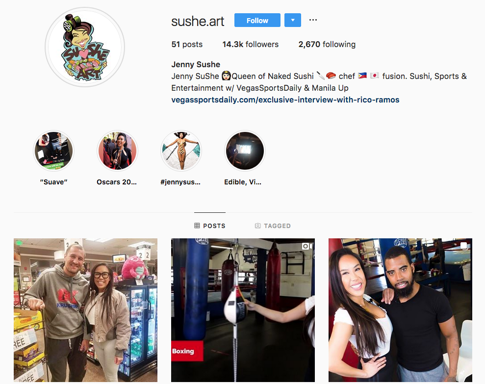 Любопитно е, че като първа фотография в профила на Джени Суши към момента стои фото с различен боксьор - Сергей Ковальов, който американския модел Джейми Фронтц съди за $8 милиона, че се е опитал да прави секс с нея и я е блъснал.