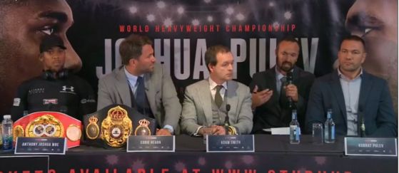 Кубрат Пулев се видя за първи път очи в очи с Антъни Джошуа преди борбата на 28 октомври в Кардиф. Двамата дадоха брифинг на същия стадион, на който ще разиграят международната купа в тежка категория пред 80 000 фенове.