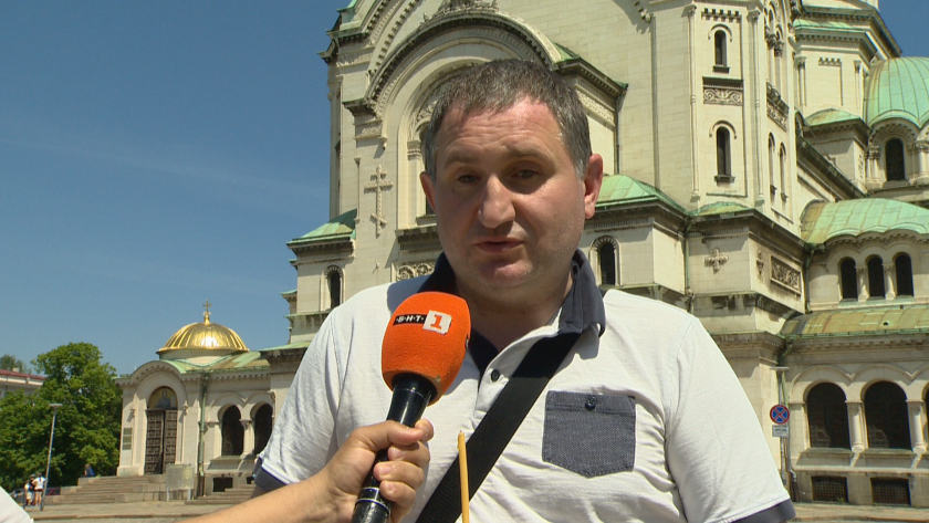 " С животни не може да се влиза в храма. Включително и куче лидер. Имаме такива правила ", разяснява Иван Иванов, клисар в храм " Свети Александър Невски ".