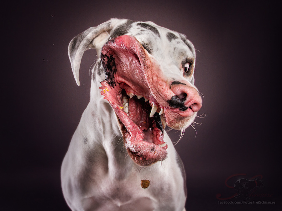 Кучета на ръба на нервна рецесия, любимци в цялостна централизация, диктувана от полета на малко гранулирано благополучие. Нищо не може да се съпостави с необикновено смешните муцунки, подготвени да заловен своята храна. Германският фотограф Christian Vieler се наема с предизвикването да показа многото лица на кучешката природа, жадуваща за ядене. Той е създател на впечатляващи техни портрети, само че когато иде тирада за улов, обноските падат, очите се уголемяват, а щракването със зъби бележи последната точка.