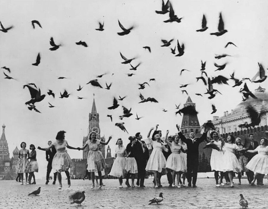 По-долу е показана една от най-емблематичните фотоси от „размразяването“ на Хрушчов – възпитаници пускат гълъби в небето след абитуриентския си бал.