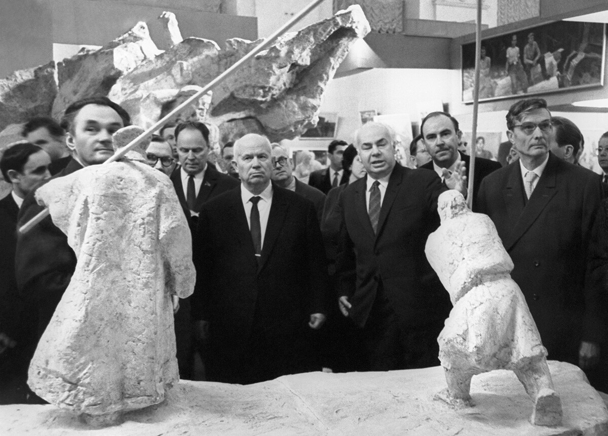 На 1 декември 1962 година Никита Хрушчов посещава галерия на авангардни художници от студиото „Нова реалност“ в Манежа в Москва и подлага на критика нереалното изкуство с неприлични думи…
