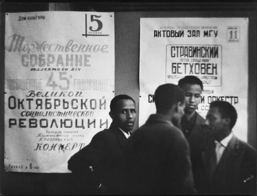 От края на 50-те години на ХХ век Съюз на съветските социалистически републики поддържа връзките с Африка: На фотосите по-долу са задгранични студенти, снимани в Московския държавен университет.