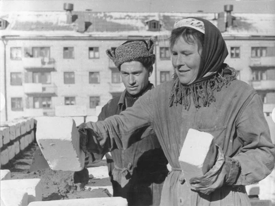 Много хора непринудено оказват помощ за построяването на новите жилищни здания – хрушчовки.