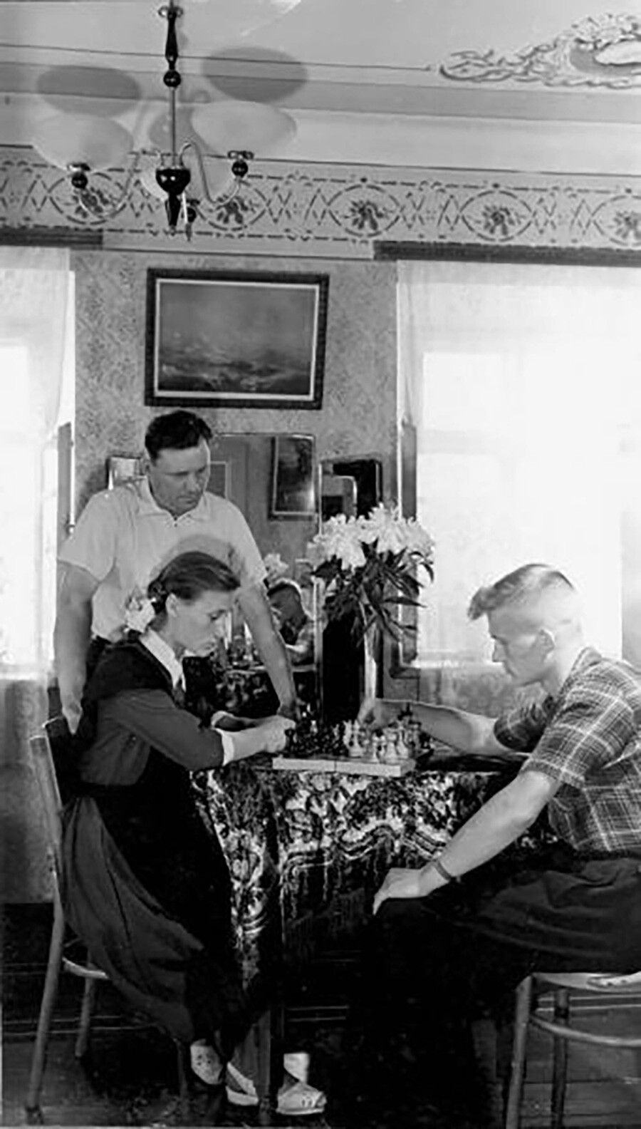 Евгений Халдей/MAMM/MDF Една шахматна нация. Нона Гаприндашвили (вдясно), упомената в телевизионния сериал на Netflix „Гамбитът на кралицата“, се бори за международното състезание.