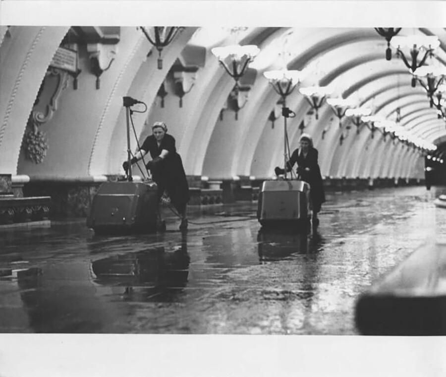 Александър Лес/MAMM/MDF Почистване на станцията Арбатская на московското метро.