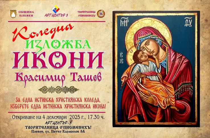 4 декември (четвъртък) – коледна галерия икони, изографисани по класическа технология от плевенския иконописец Красимир Ташев. Ще може да извършите избор всред повече от 40 православни икони, рисувани през тази година. Откриване - 17.30 часа.