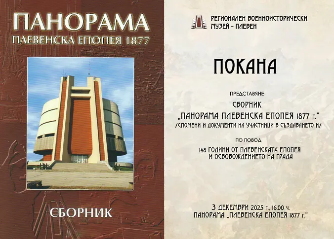 3 декември (сряда) - По мотив 10 декември и 148 години от Освобождението на Плевен, РВИМ - Плевен ще показа Сборник „ Панорама „ Плевенска епопея 1877 “ - Спомени и документи на участници в основаването ѝ, както и филм за построяването на Панорамата. Ще участват участници в строителството на Панорамата. Начало - 16.00 часа.