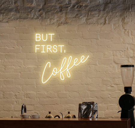 Но първо, кафе Sign Plug Plug Your To Yormal Outled и вашия знак за Neon. $99.46 on Etsy, on sale until June 2