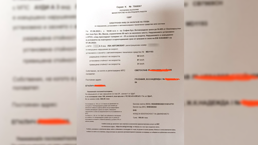 На притежателя на колата е наложената санкция в размер на 800 лв., макар че на фотографията от пътните камери ясно се вижда още, че никой не ръководи транспортното средство, а нарушителят в действителност е водачът на репатрака.