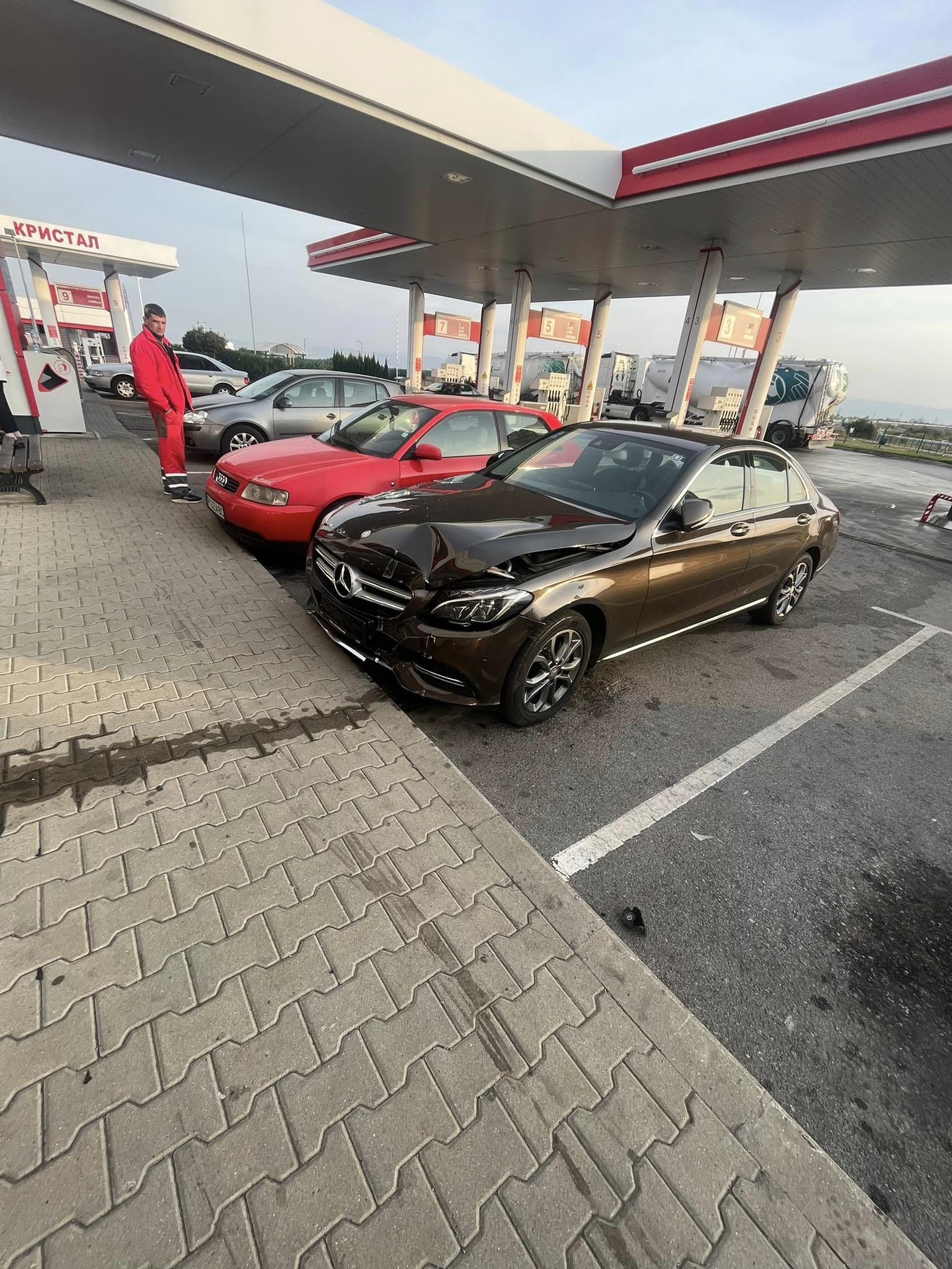 Мерцедес се вряза в бензиностанция на АМ Струма СНИМКИ