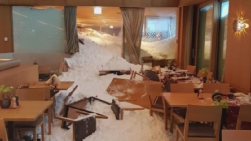 Любителски фрагменти демонстрират обстановката вътре в постройката, откакто снежната маса е рухнала върху нея. Инцидентът е станал в региона на Сентис - Швегалп, на височина 1300 метра.