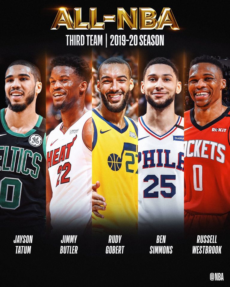 В Третия състав са включени Джейсън Тейтъм (Бостън), Джими Бътлър (Маями), Руди Гобер (Юта), Бен Симънс (Филаделфия) и Ръсел Уестбрук от Хюстън.