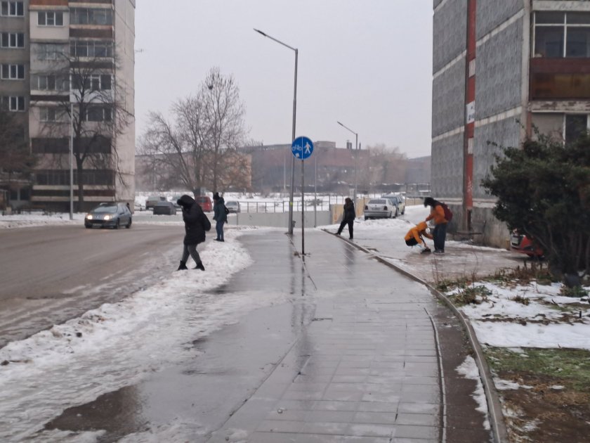 Ледът по тротоарите и улиците принуди русенци да употребяват комплицирани акробатични номера, с цел да се придвижват.
