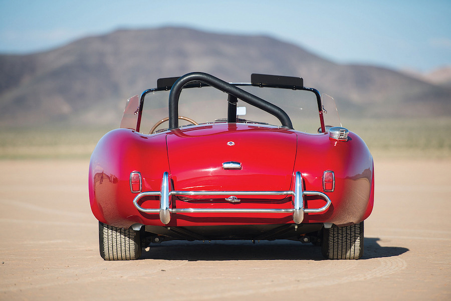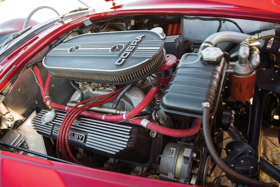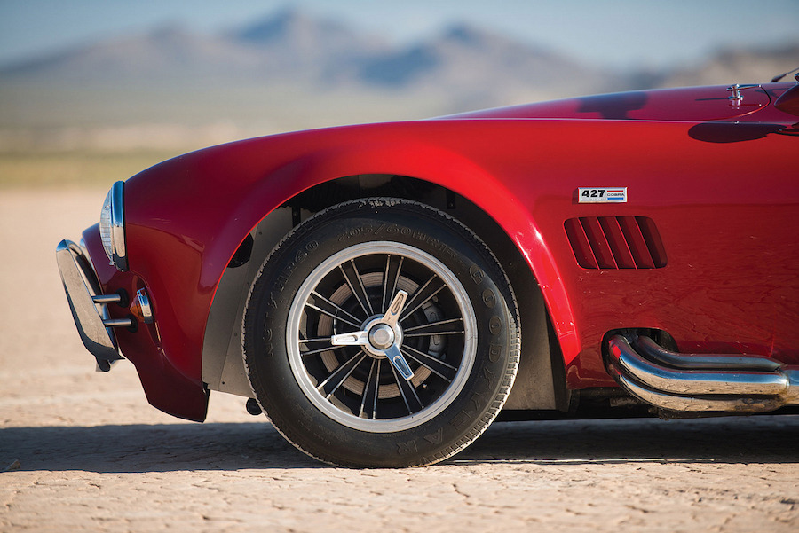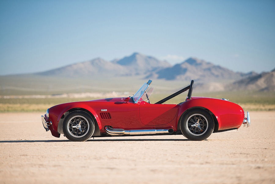 Колата е била благосъстоятелност на самия Шелби и разполага с 428 куб. инча V8 мотор. Три скоростният автоматизиран предавател е инсталиран от самия него и прави автомобила съвършен за постоянна приложимост. Разполага с без значение предно и задно окачване с неравна дължина на горните и долните носачи, 90-инчово междуосие и четириколесни хидравлични дискови спирачки. Боядисана е в блестящо алено, поддържана в чудесно положение и цялата тази огнена хубост ще бъде препоръчана на търг през август.